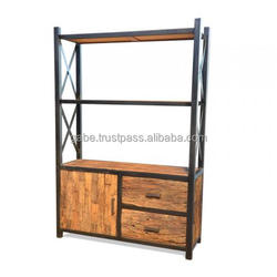 家庭用ホテルの家具,家庭用オフィス用リビングルーム1ドア2引き出し付き工業用ソリッドウッドブックラック素朴な鉄フレーム