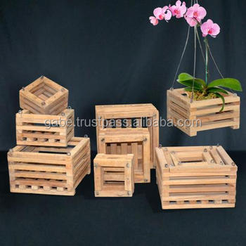 木製ポットORCHIDSチーク材手作り、木製ポットミニ、チーク木製ポット