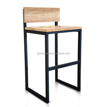 Rústico Moderno Conjunto de Teca Barstools com Praça Antique Wood Seat Metal Frame Uso comercial Bar Sala de jantar Móveis