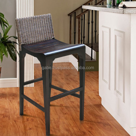 Modern Sólido Mogno Madeira Rattan Wicker Combinação Panama Bar Stool para Sala de Estar Cozinha Jantar ou Bar Móveis