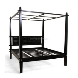 Áp Phích Giường Đồ Nội Thất Bằng Gỗ Tếch Cổ Màu Tối