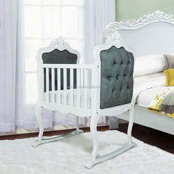 Phong cách da lộn màu xám và gỗ gụ gỗ bé nôi cho trẻ em trắng sơn nôi với thiết kế sang trọng